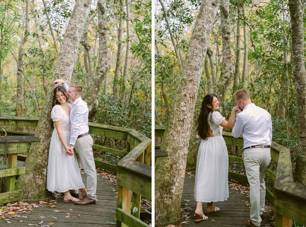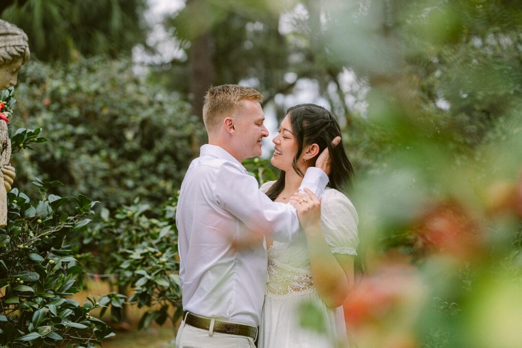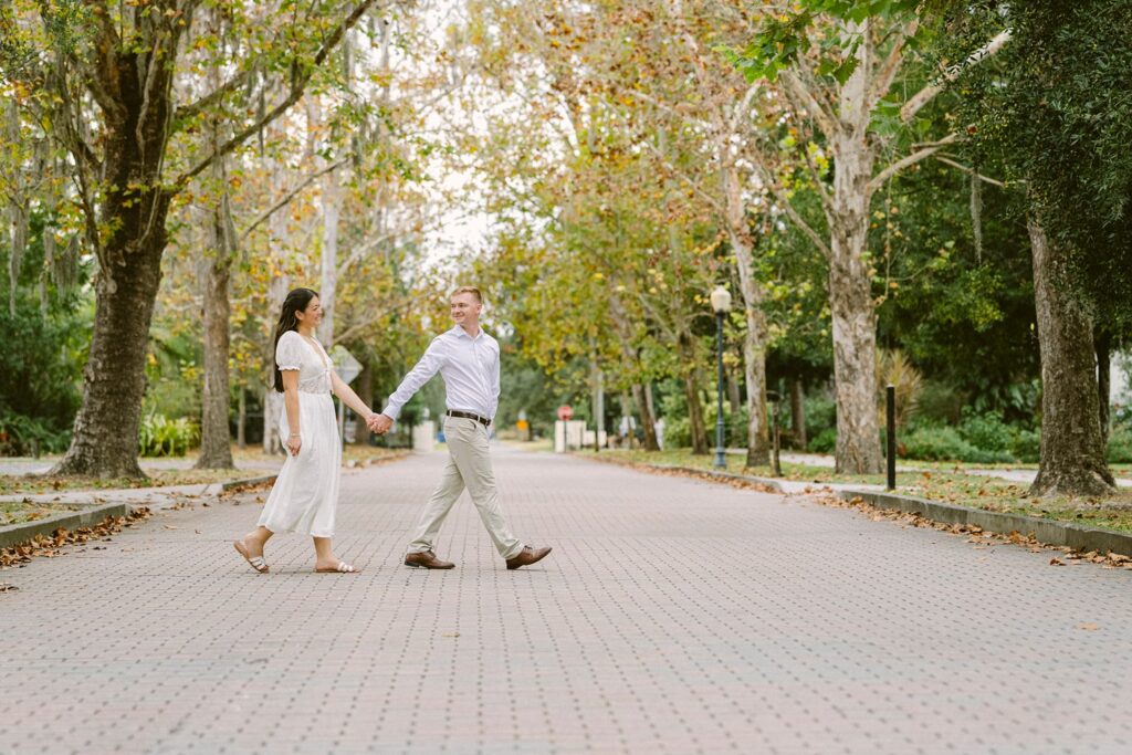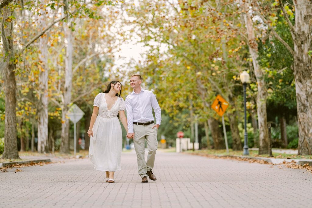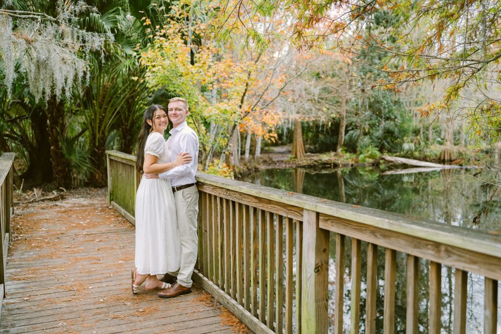 Alexis and Kyle drove all the way from St. Augustine for their engagement session, which already says so much about how intentional they are. Even with an overcast December sky, the day surprised us with slightly warm temperatures and the most beautiful, soft light—perfect for the light & airy, romantic style they booked me for.